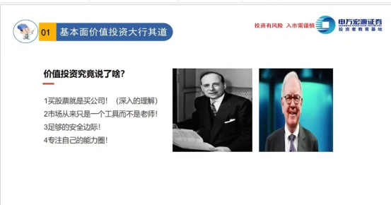 在讲座中,叶奇杰老师讲解了投机和投资的关系基本面价值投资、投资收益的来源、投资赚钱的理论基础、最好的盈利模式、如何挑选符合条件的投资公司、虚拟回报和真实回报的双轮驱动、伟大企业优秀生意的特征、市场真实表现的唯一准则、价值投机分析以及深度价值投资等投资常识。叶奇杰老师强调要专注深度价值分析,时间是最大的复利回报,止损风控是常态,做到行知合一。
